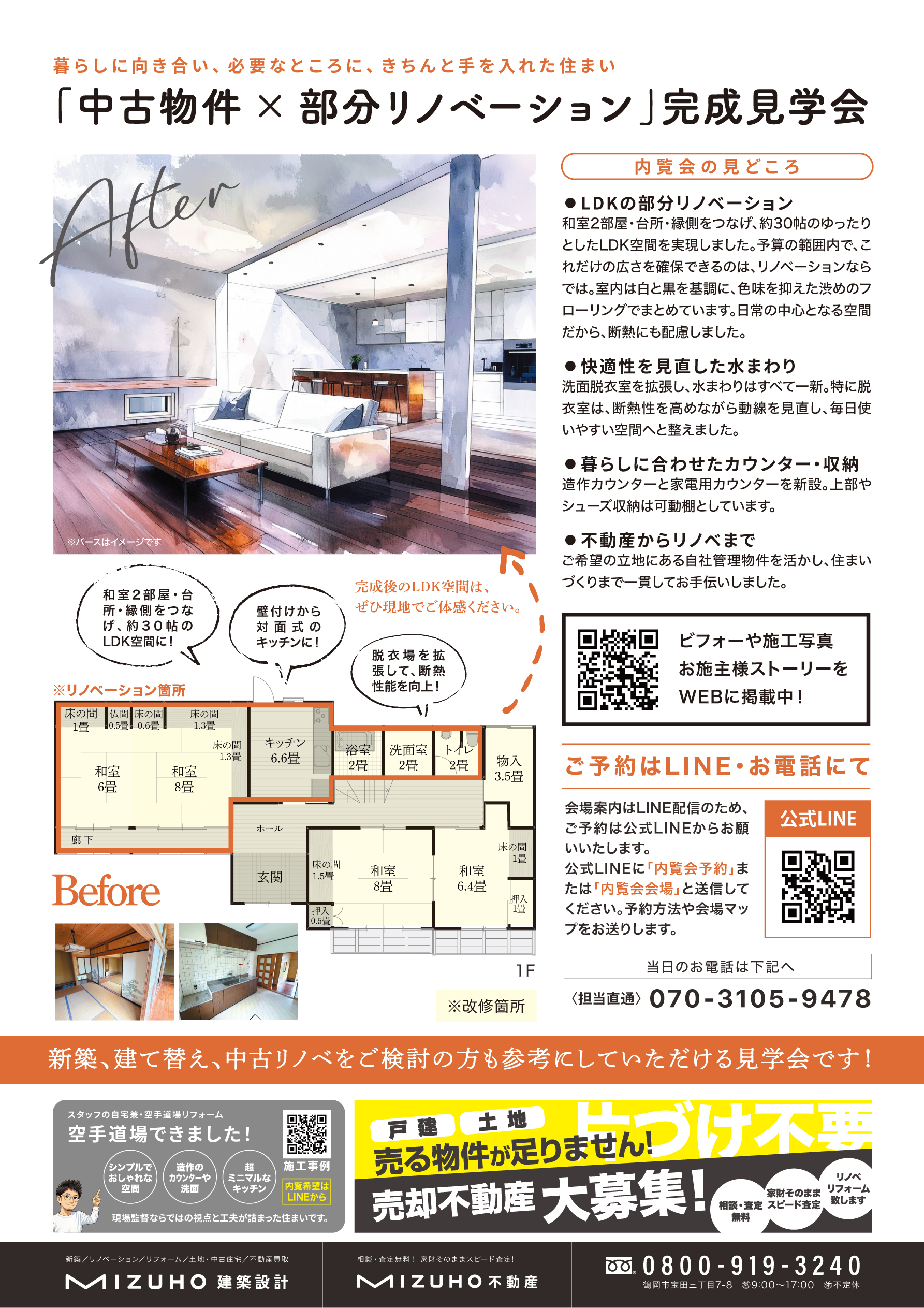 当日のご来場はお電話、またはLINEまでお願いいたします。