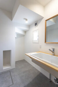 廊下スペースを見直してトイレを配置し、洗面脱衣室とユニットバスをそれぞれ広げることで、水まわりの使いやすさも高めています。