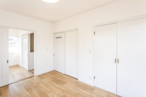 2階は内窓を設置しフローリングを上貼り。クロスの張替えや建具の塗装も行い、空間全体を統一感のある仕上がりに整えました。